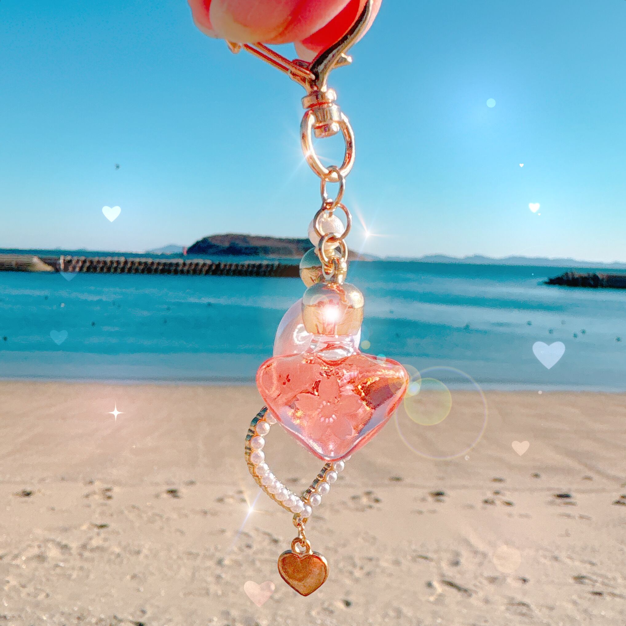 たくさんのハートに「恋が叶う魔法」をぎゅっと詰め込んだメモリーオイルキーホルダーです♡