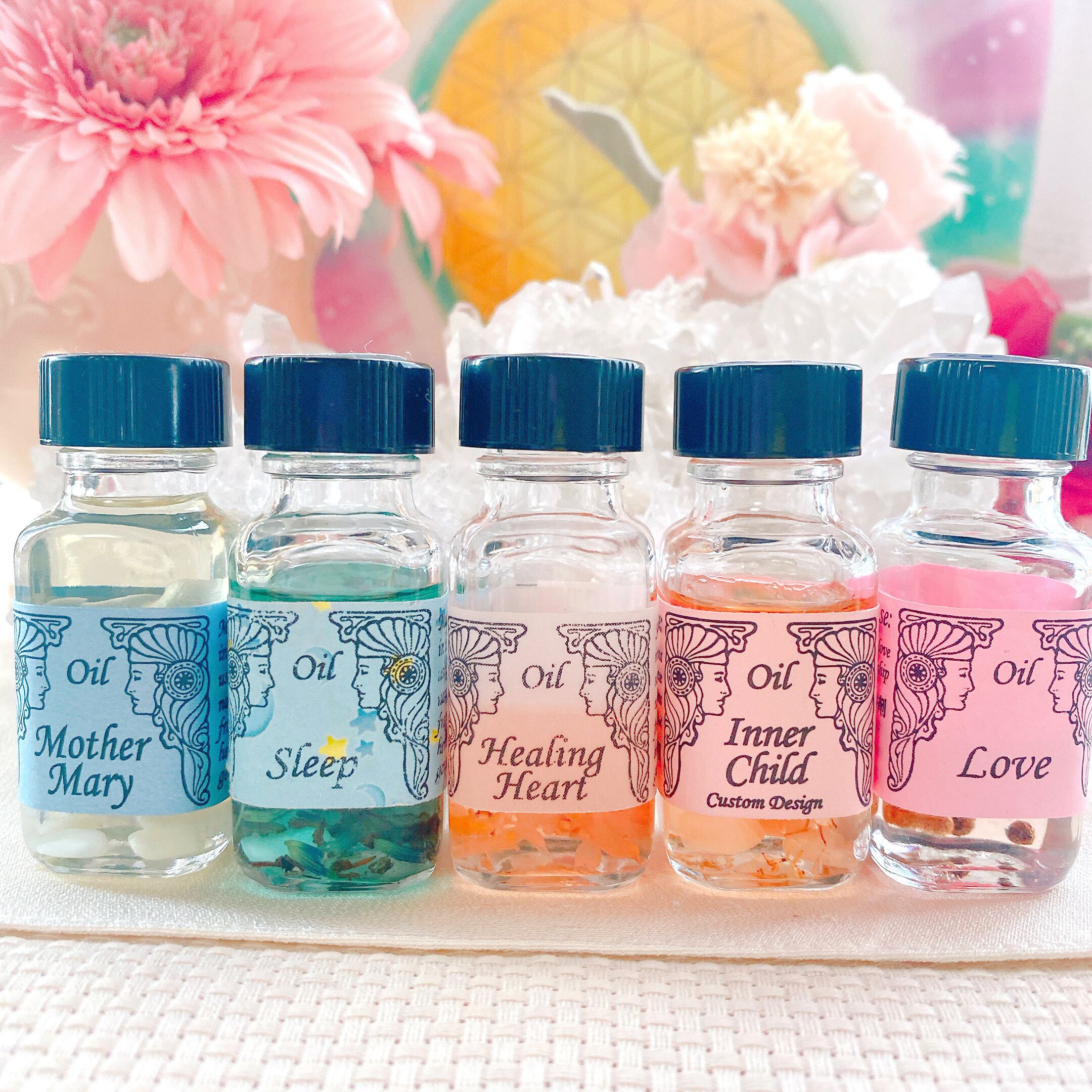 彼女はすべての子供の母とも言われています。香りはローズとイチジクで、マリアの象徴であるホワイトローズの花びらも入れ、よりステキなオイルにしました。そして石は、マリアのヒーリングと純粋さを表わすブルーレース・メノウを加えました。